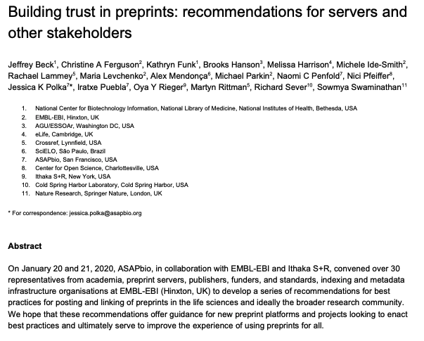 Information about preprint servers, articles and sites regarding preprints, overlay journals and how funding agencies view preprints.