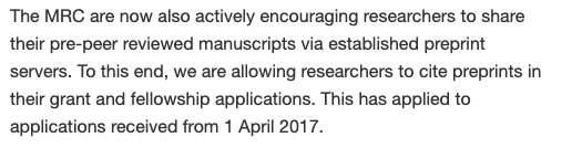 Below are some excerpts from various funding agencies on their views of preprints in grant submissions. Basically, they are a good thing.